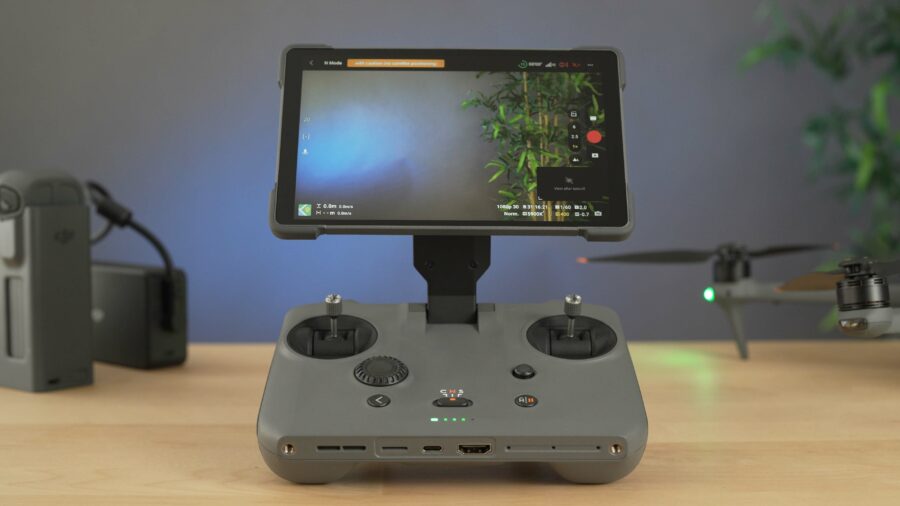 But let’s move on to some more innovations by DJI — the redesigned controller, the RC Pro 2. The 7-inch Mini-LED display with 2000 nits offers great visibility even in direct sunlight. By lifting the display, you uncover the sticks and other buttons underneath, making the collapsible design both clever and intuitive.